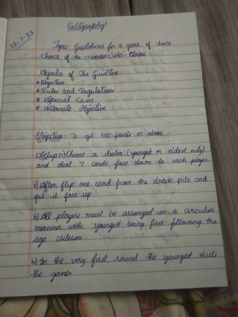 This handwriting sample presents a style that leans towards formal cursive, with an attempt at neatness. The strokes are generally rounded and flowing, though the consistency wavers. For instance, the capitalization of 'Calligraphy' and 'Topic' is bolder and more decorative than the rest of the text. The pressure appears fairly consistent throughout, creating a balanced impression. There's a slight rightward slant, which is pretty standard.