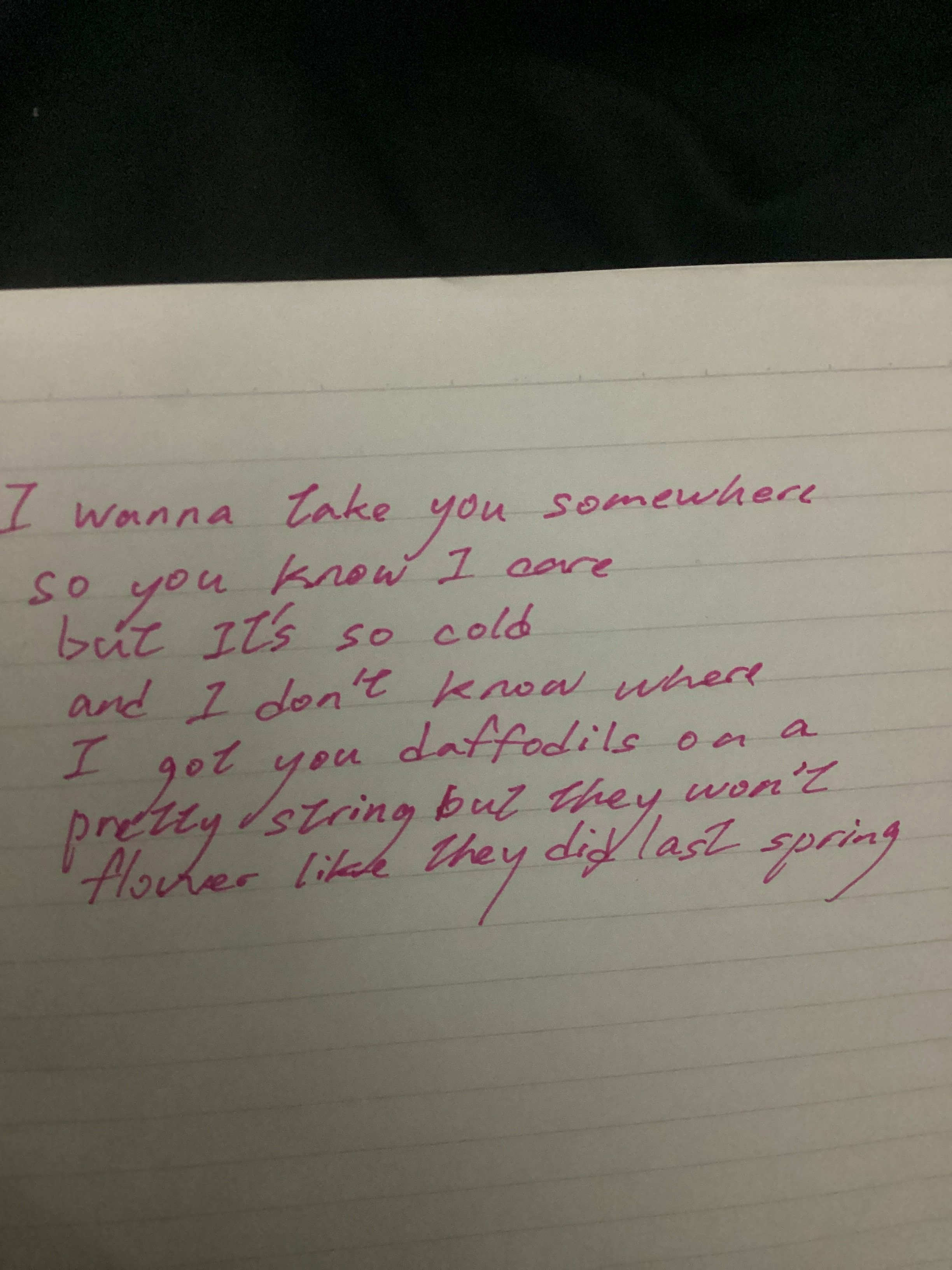 This handwriting suggests a personality that is both warm and somewhat guarded. The forward slant reveals an openness to new experiences and a desire for connection, while the controlled letter size indicates a degree of self-awareness and composure. The rounded letterforms point to a friendly and approachable nature, while the occasional sharp angles hint at a more assertive side. The inconsistent neatness might indicate someone who is creative and expressive but occasionally struggles with attention to detail or can be easily distracted. Overall, the writer likely possesses a blend of sociability and independence, capable of forming close relationships but also valuing their own space and autonomy.