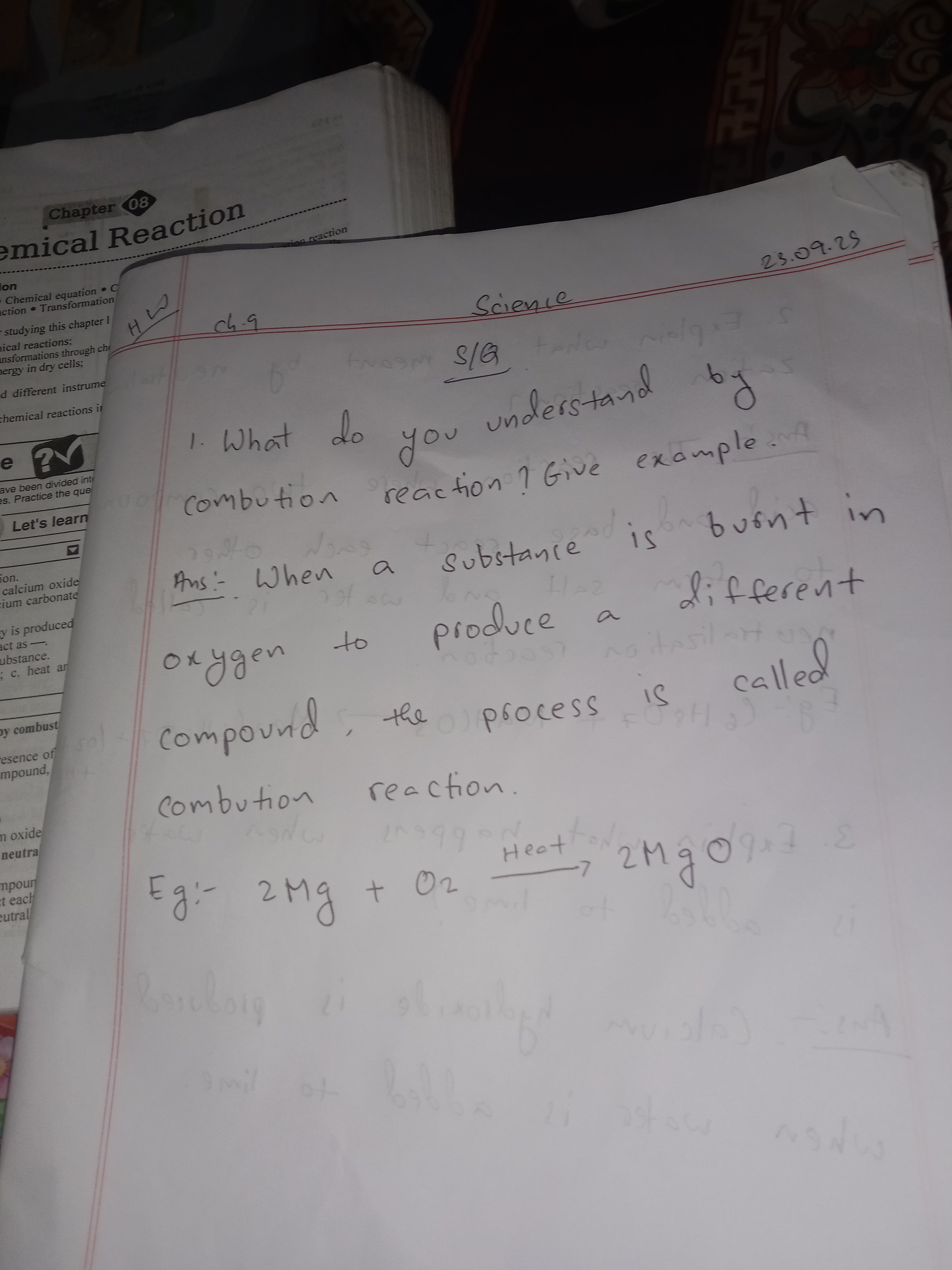 The handwriting is characterized by a simple, upright style with rounded letterforms. There's a noticeable lack of slant, suggesting a direct and uncomplicated approach. The baseline wavers a little, hinting at a possible struggle for sustained concentration, though the overall impression is one of clarity and intent. Letter size is fairly consistent, but some words, like "combustion" are written with inconsistent sizing, which gives the handwriting a childish look.