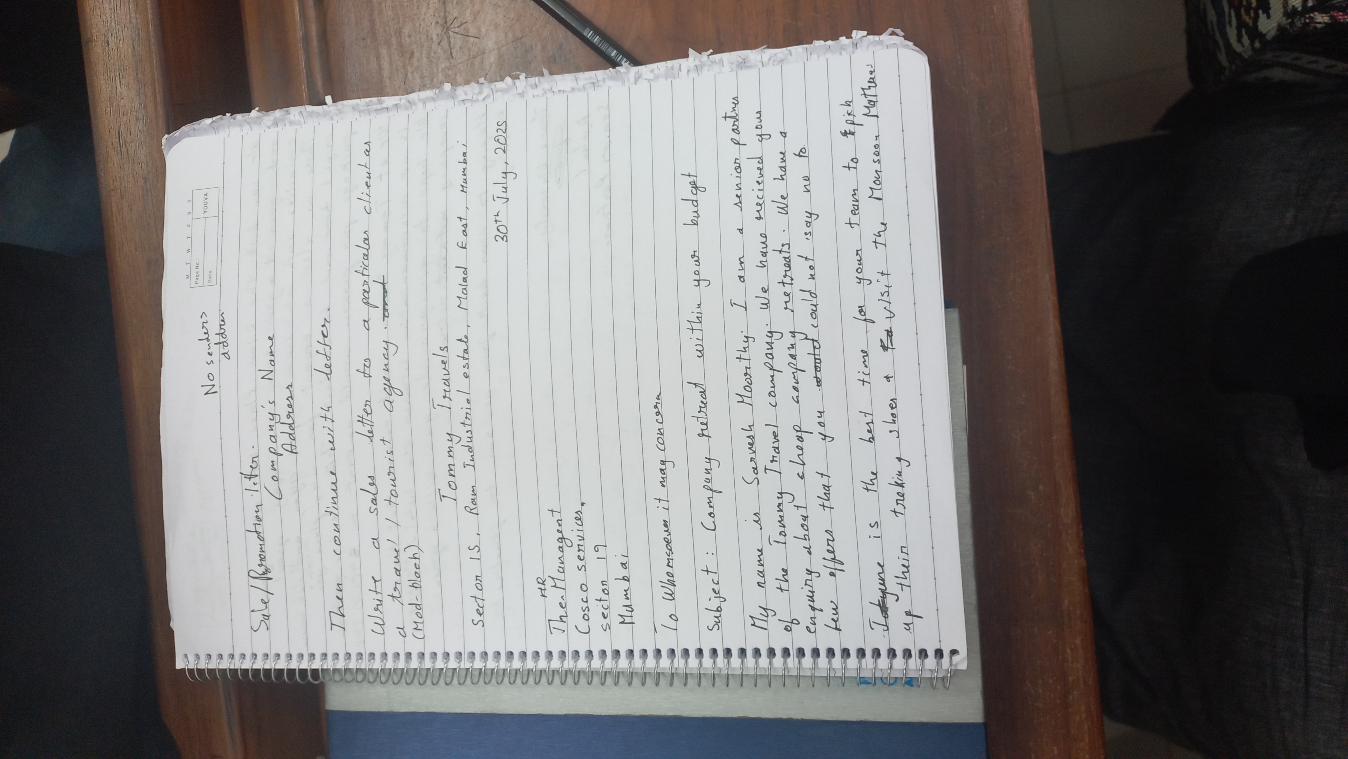 The handwriting in this sample displays a neat, upright style with rounded letterforms, suggesting a focus on clarity and precision. The consistent spacing and relatively uniform letter height, as seen in phrases like "Company retreat within your budget" and "Tommy Travels," indicate a controlled and methodical approach. While legible, the writing lacks significant slant or variation in pressure, pointing towards a more reserved expression.