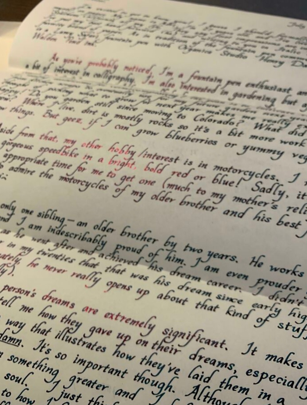 This style suggests a personality that appreciates aesthetics and takes pleasure in creative pursuits. The writer likely has a strong sense of self-expression and enjoys exploring different avenues for their interests, as evidenced by the mention of fountain pens, gardening, and motorcycles. There is a sense of enthusiasm and a desire to share their passions with others. The writer seems thoughtful and values personal connections.