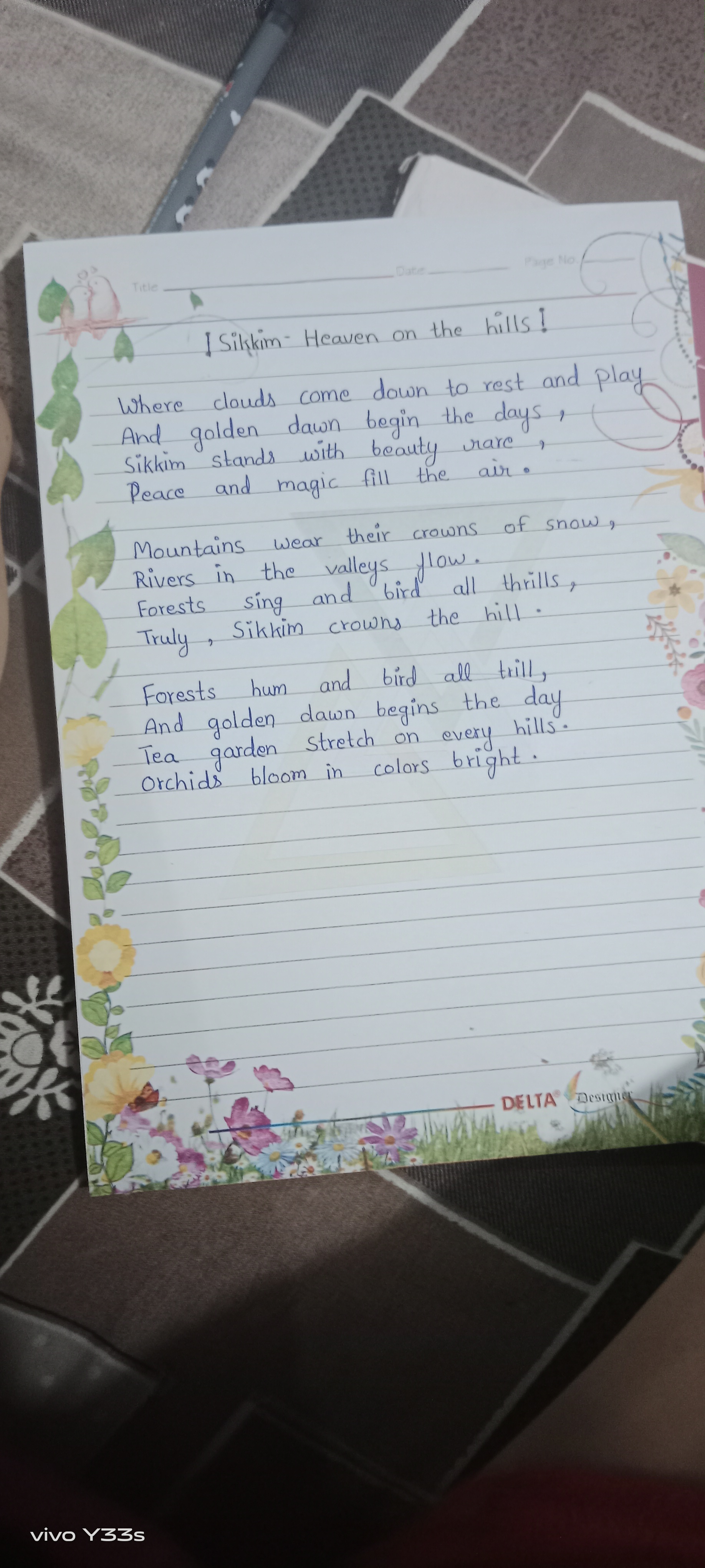 To further refine this handwriting, consider practicing maintaining a more consistent baseline. Focusing on the uniformity of letter height could also improve legibility. Perhaps experiment with varying the pressure applied to the pen to add a bit more dynamism and flair, while maintaining the overall serene aesthetic. Embrace the flow but consider a more stable foundation for each letter.