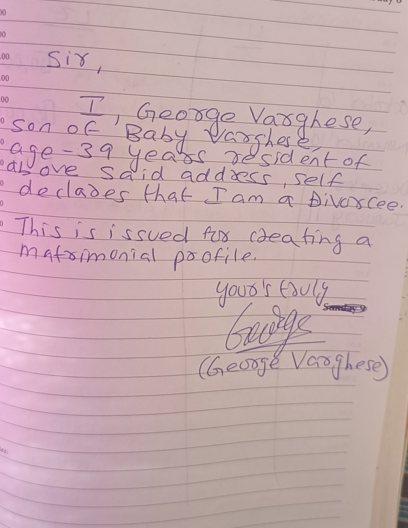 This handwriting leans towards a simplified, upright style, prioritizing clarity over flourish. The letter formations are generally rounded, but with some angularity, particularly in the uppercase letters. There is a tendency towards connecting letters within words, as seen in "Varghese" and "creating". The size is relatively consistent, but the spacing between words varies, creating a slightly uneven texture. Overall, the writing is quite legible and functional, if a little impersonal.