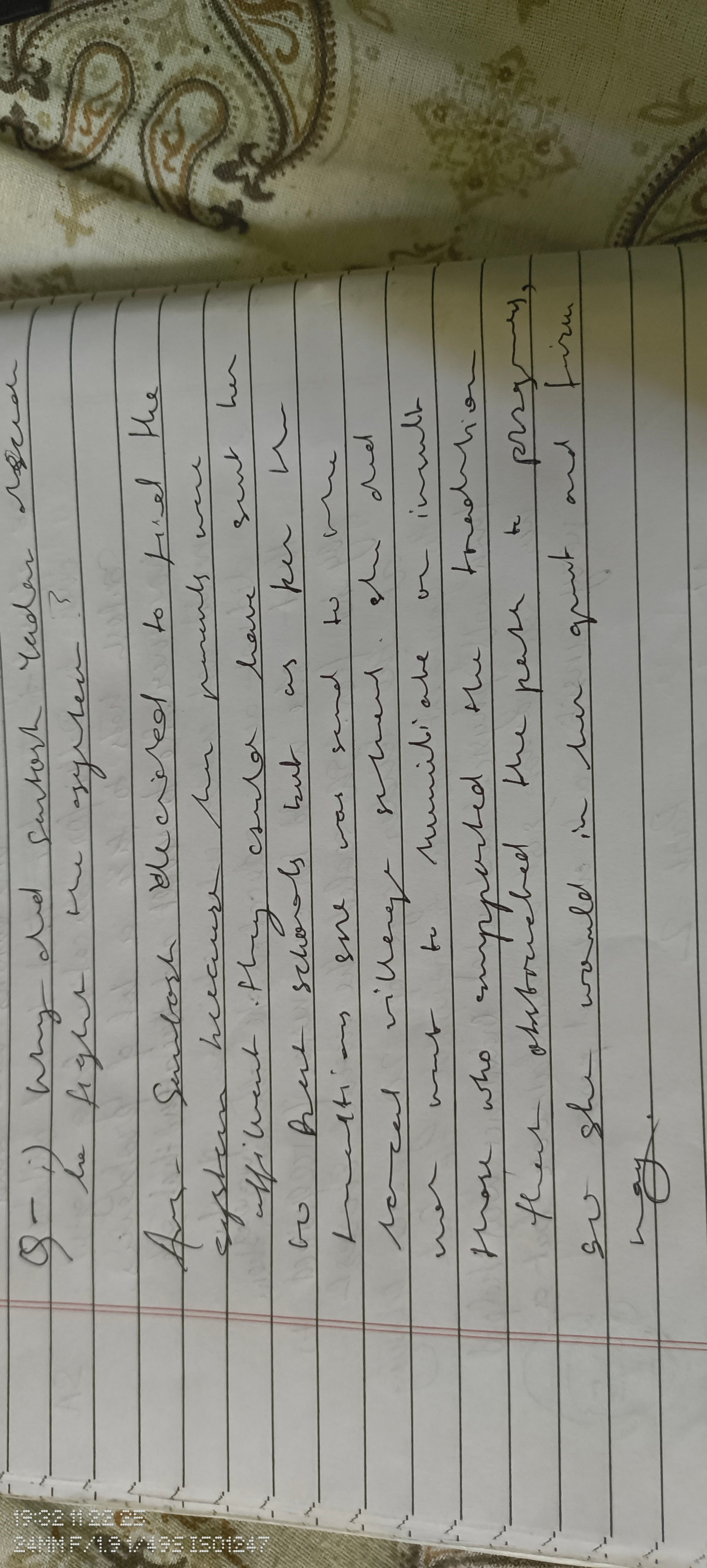 The handwriting style is characterized by a forward slant, suggesting a proactive and engaged approach. The letter size is relatively uniform, with consistent spacing between words, indicating a structured mindset. While mostly legible, some letter formations, such as the 's' and 'r', exhibit a degree of simplification, contributing to a somewhat casual appearance. The pressure applied appears moderate, creating a balanced and even stroke weight. The handwriting has some inconsistencies, as demonstrated in words such as "Santosh decreed" and "supported the tradition", indicating that concentration can wane.