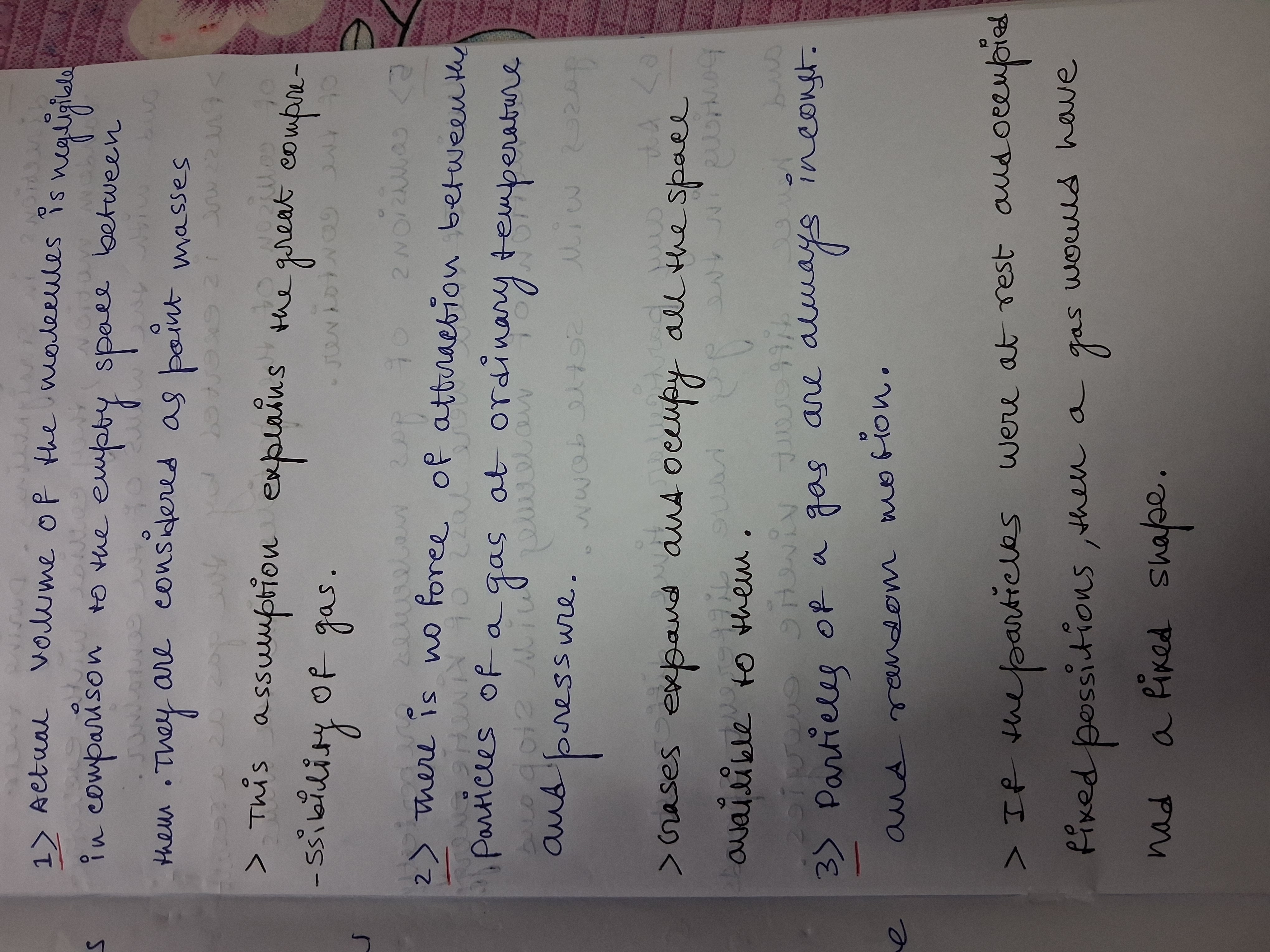 The handwriting is characterized by a flowing, cursive style, with rounded letterforms, especially evident in words like "molecules", "pressure", and "shape". The writing leans slightly to the right, suggesting a forward-moving energy. There's a good level of neatness and legibility overall, although some words could benefit from more consistent spacing, particularly between the letters. The loops in letters like 'g' and 'y' are elongated, lending a touch of flamboyance to the writing.