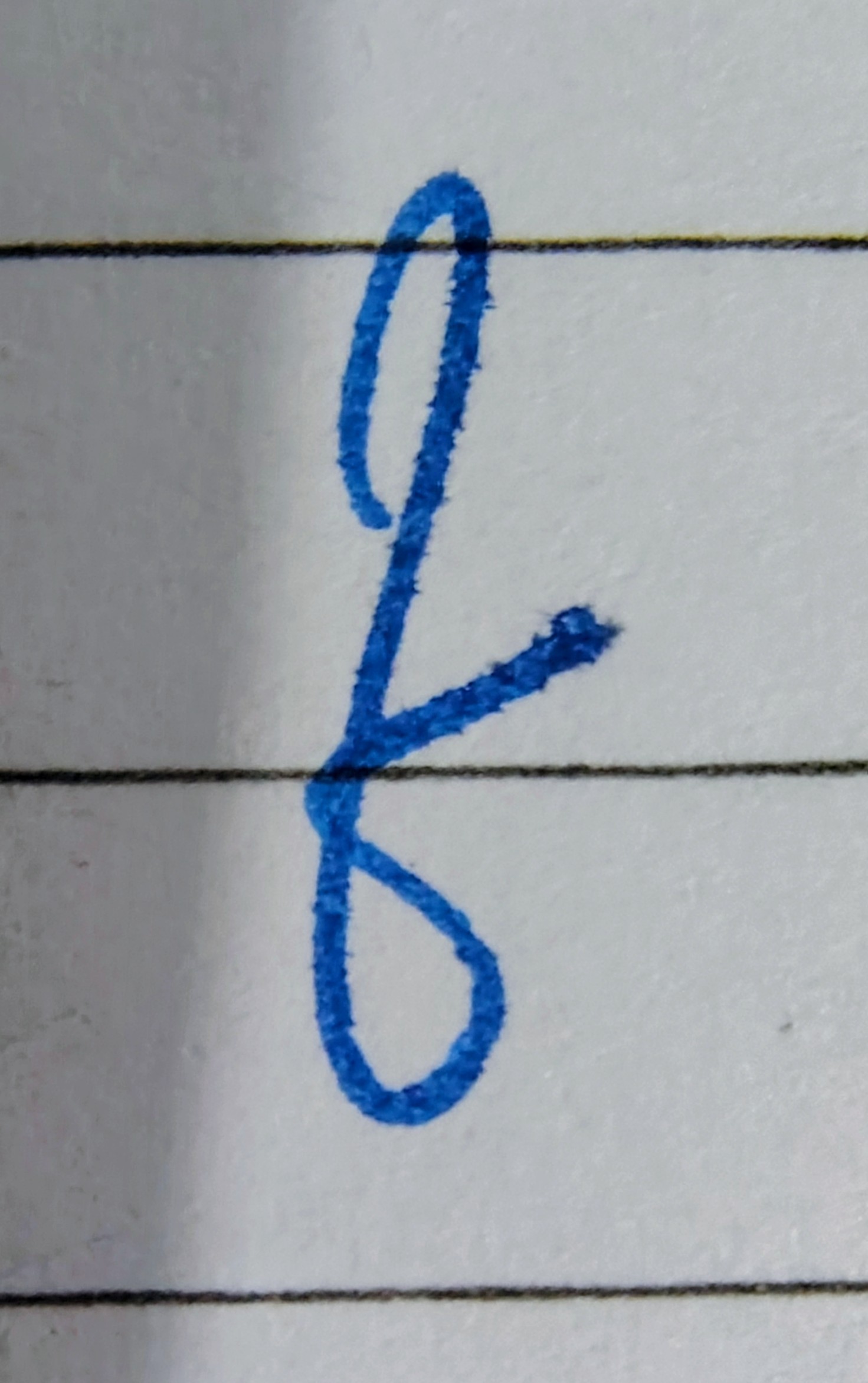 This handwriting, represented by a single letter, showcases artistic flair and a confident, expressive style, hinting at a creative and individualistic personality. Improving consistency in letter formation could enhance the handwriting's overall polish.