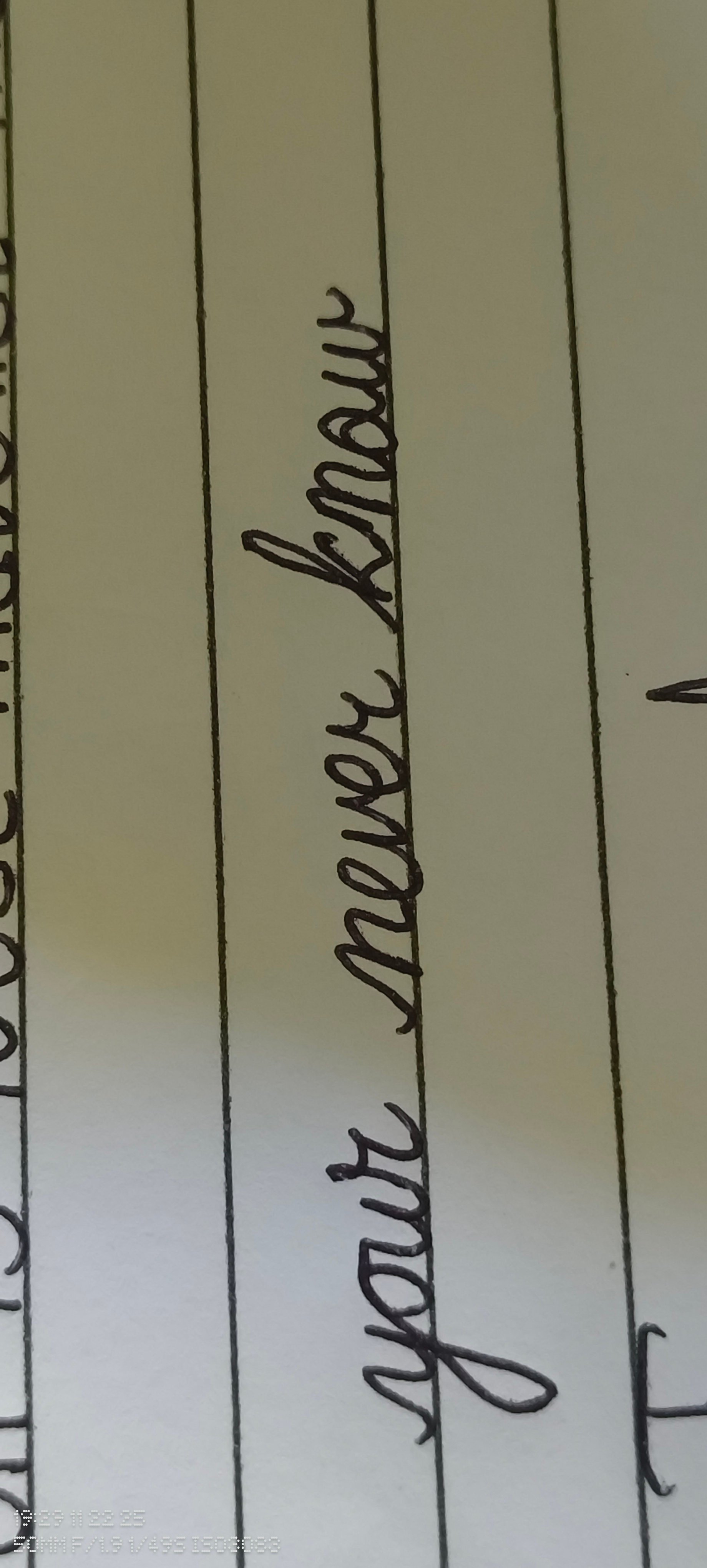 The handwriting exhibits a distinctive, loopy style, characterized by rounded letterforms, for example, the roundness of the letter 'o' in "your" and "know". There's a noticeable emphasis on circular movements, with generous loops evident in letters like 'y' and 'k'. The writing appears to be neat, with relatively consistent letter sizes, but the connections between letters are not always fluid. The overall impression is of a deliberate, carefully formed script.
