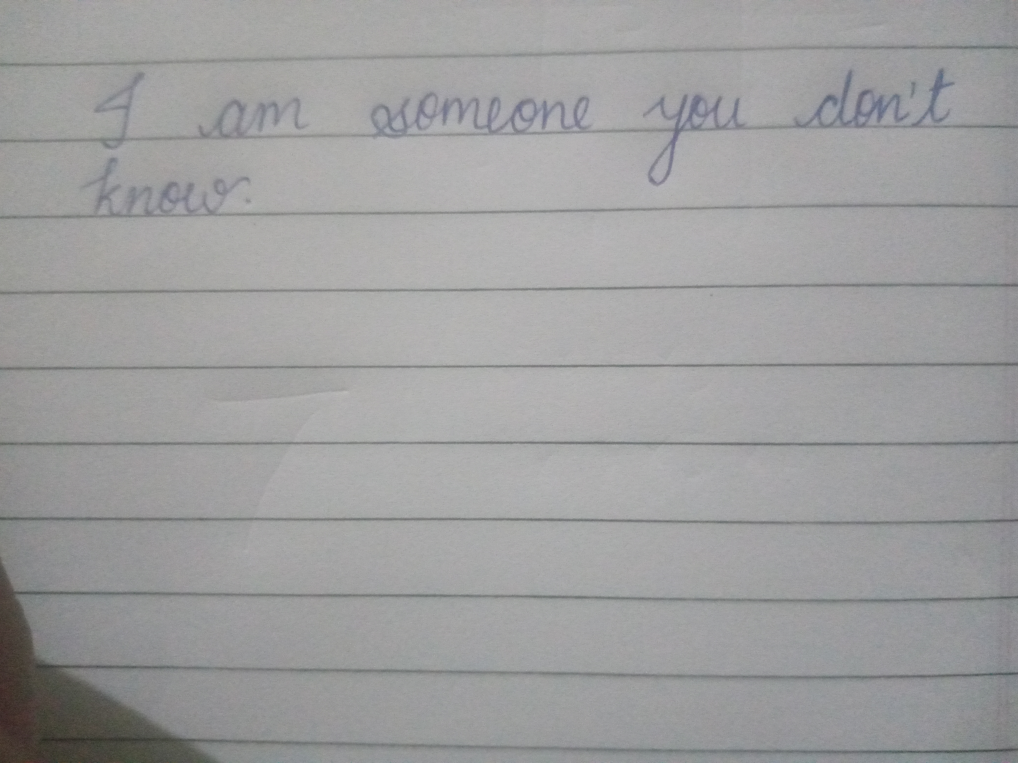 This handwriting is characterized by its simplicity and deliberate form. The letters are neatly formed, with a noticeable roundness to shapes such as the 'o' in 'someone' and 'know'. The writing has a slight slant, indicating a degree of emotional expression, and is evenly spaced and positioned well on the page. The consistency in letter size and pressure suggests a controlled and thoughtful approach to writing.