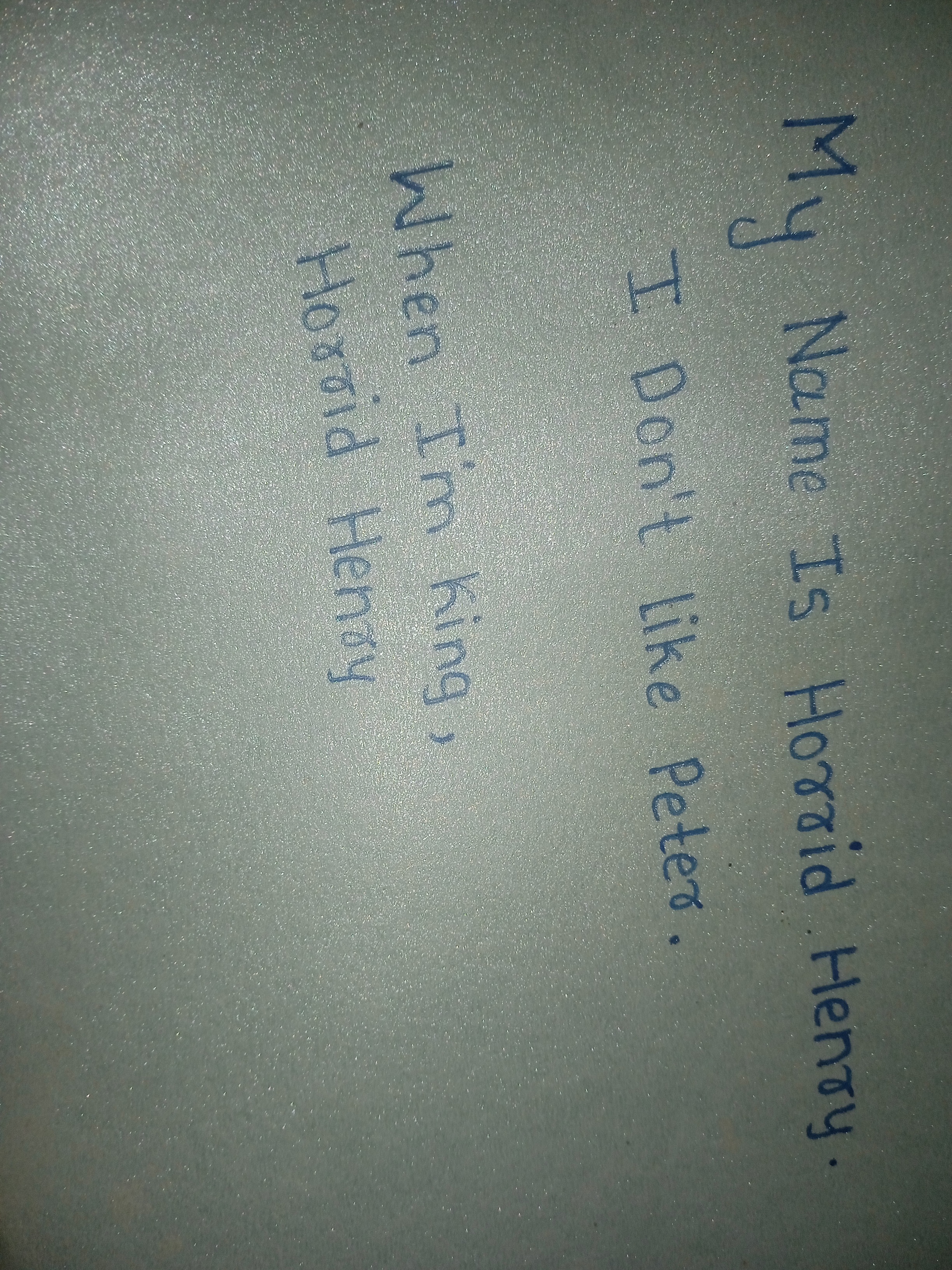 The handwriting exhibits a childish, upright style with simple letter formations. The rounded 'y' and the straightforward 'I' indicate a basic, unembellished approach to writing. The overall impression is that of a young person still developing their motor skills, seen in the slight inconsistency in letter size and spacing. The pressure applied seems even, suggesting a relaxed grip and perhaps a lack of emphasis or urgency.
