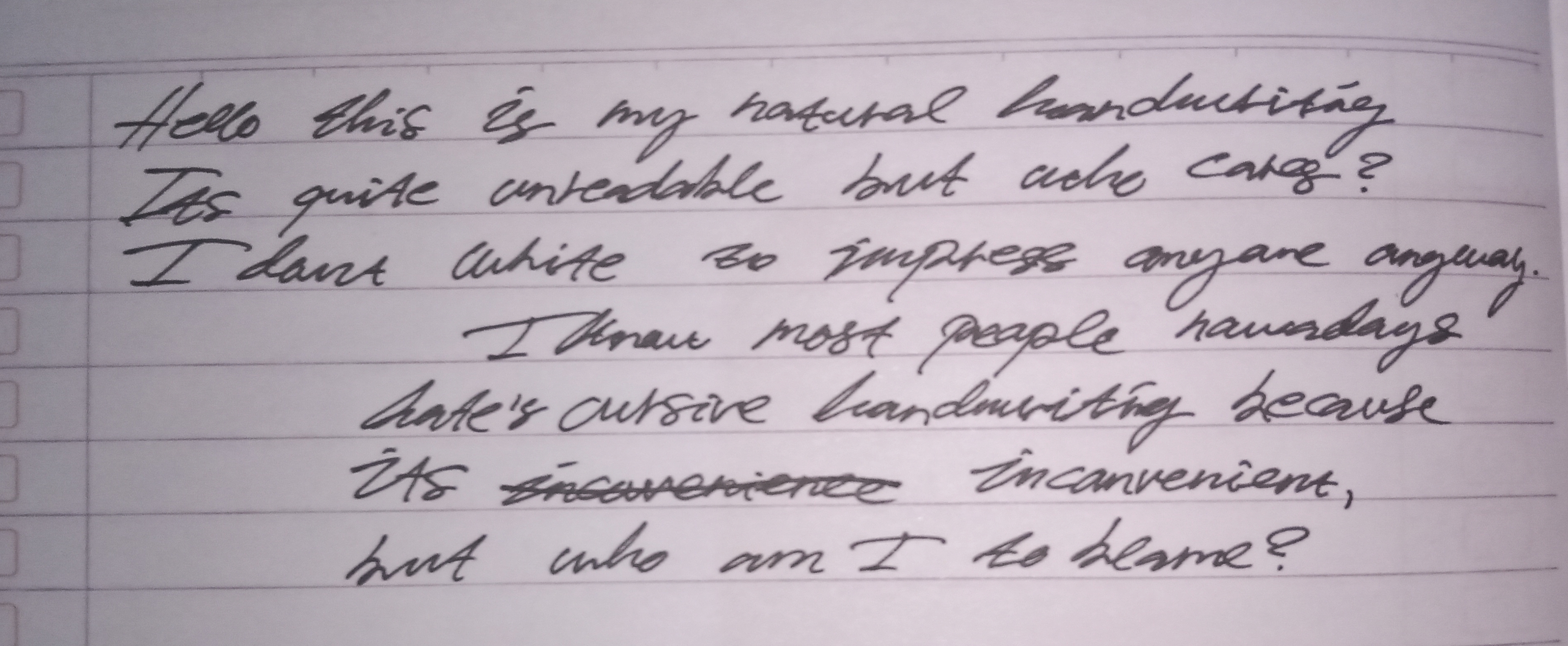 To improve legibility, try focusing on forming each letter distinctly, especially within words. Slowing down the writing speed can help in achieving better clarity. Practicing letter formations, especially those that tend to blend together, can enhance readability without sacrificing the unique character of the handwriting. Also, consider being a bit more careful with the spacing between letters and words.