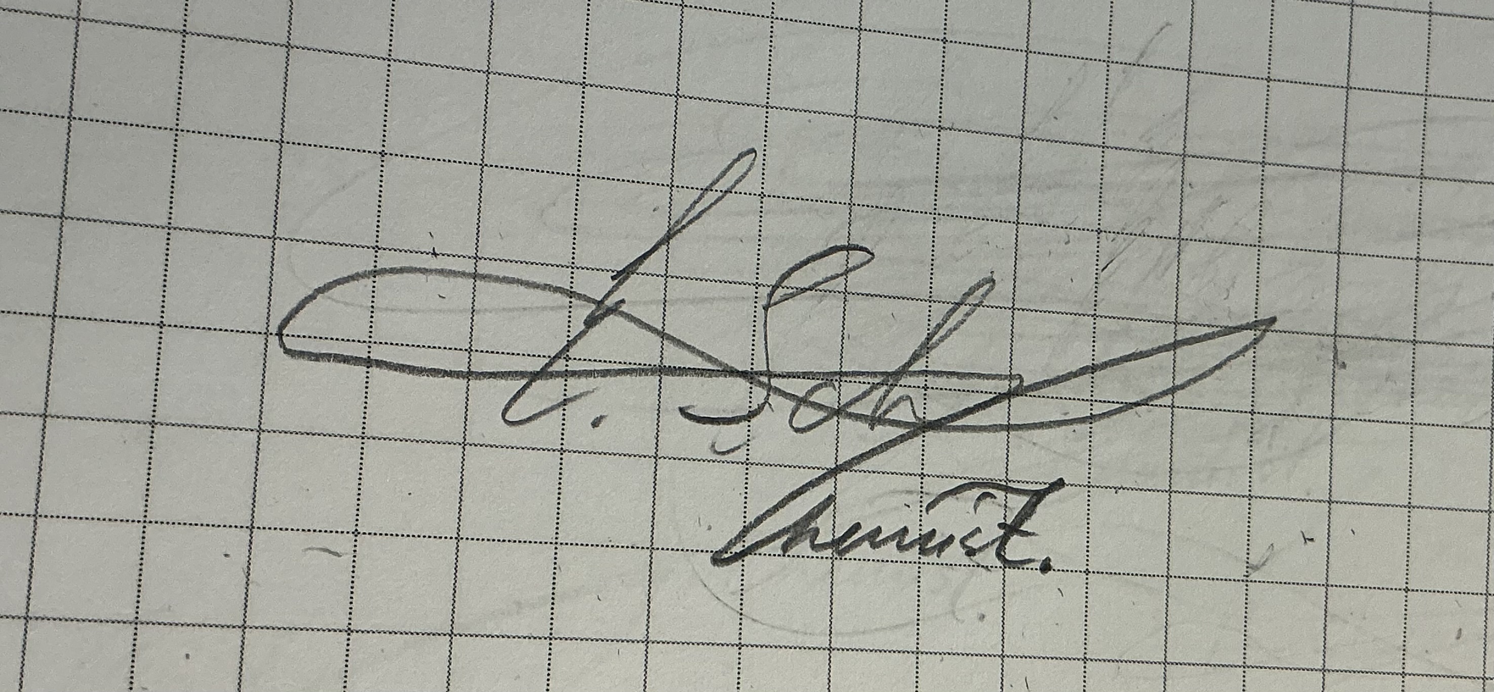 Based on this handwriting, one might infer that the individual possesses a confident and perhaps even flamboyant personality. The large, sweeping strokes suggest a bold approach to life and a willingness to make a statement. The flourishes and decorative elements indicate a creative and artistic inclination, while the consistent pressure and steady hand point to a self-assured and controlled demeanor. They may have a strong sense of self and enjoy expressing themselves in unique and memorable ways.