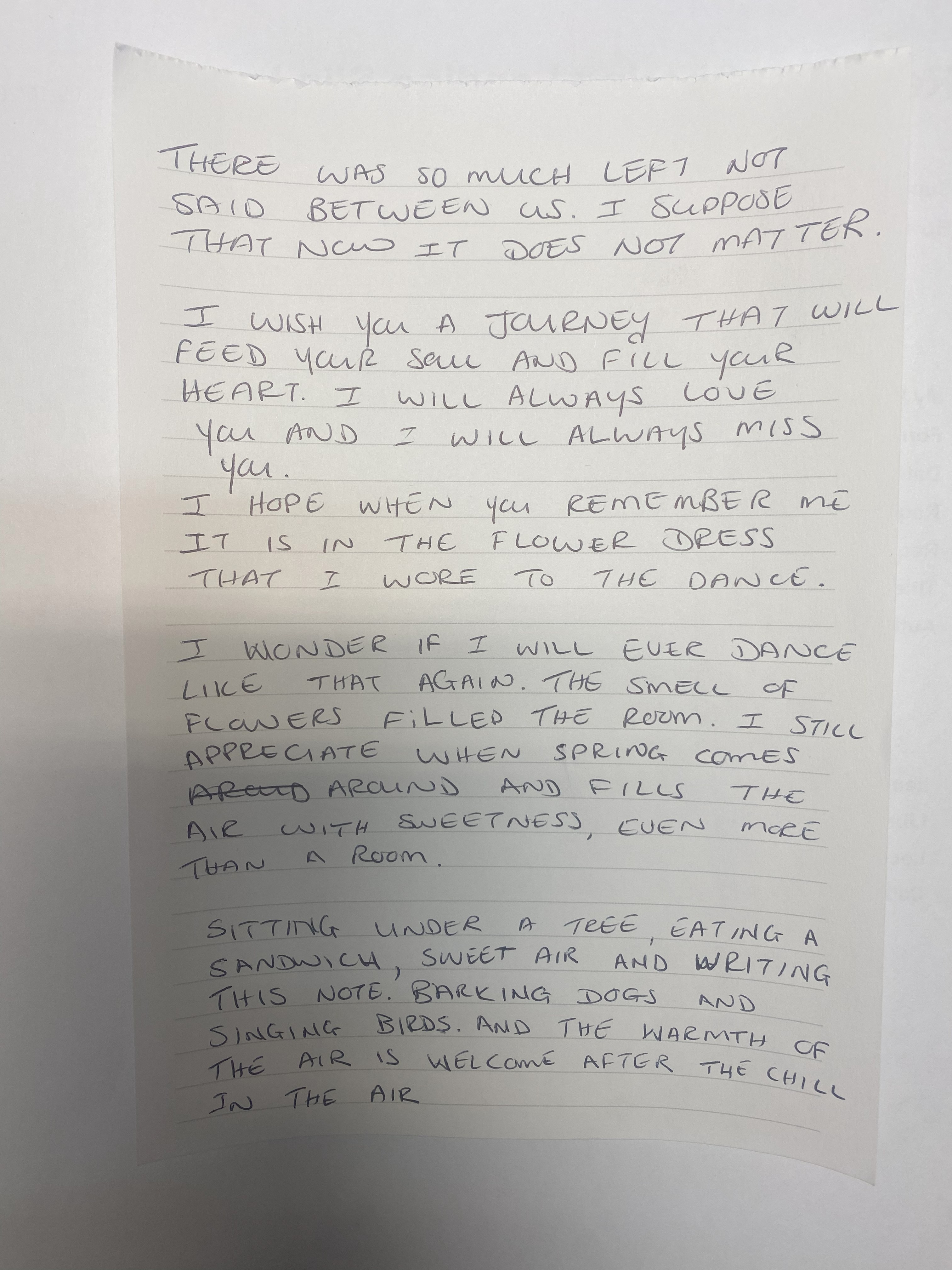 This handwriting suggests a thoughtful and introspective personality. The upright slant indicates emotional control, while the overall neatness reveals a desire for order and clarity. The writer likely possesses a strong sense of empathy, as suggested by the sentiment of the note. They may be prone to nostalgia, and appreciate simple pleasures, such as "sweet air" and "singing birds."