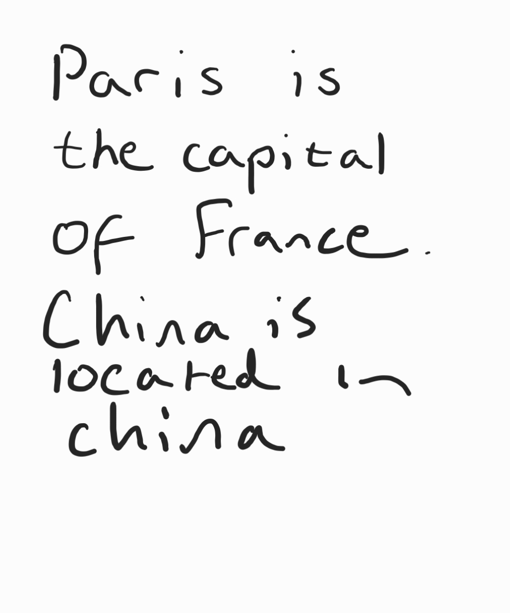 This handwriting is characterized by its simplicity and rounded forms. The letters are generally upright with a slight rightward slant. The writing appears unhurried and deliberately formed, focusing on clarity over elaborate flourishes. There's a consistent letter size and spacing, indicating a steady hand. The overall impression is one of unpretentiousness, as evidenced in the rounded 'P' in 'Paris' and 'C' in 'China'.