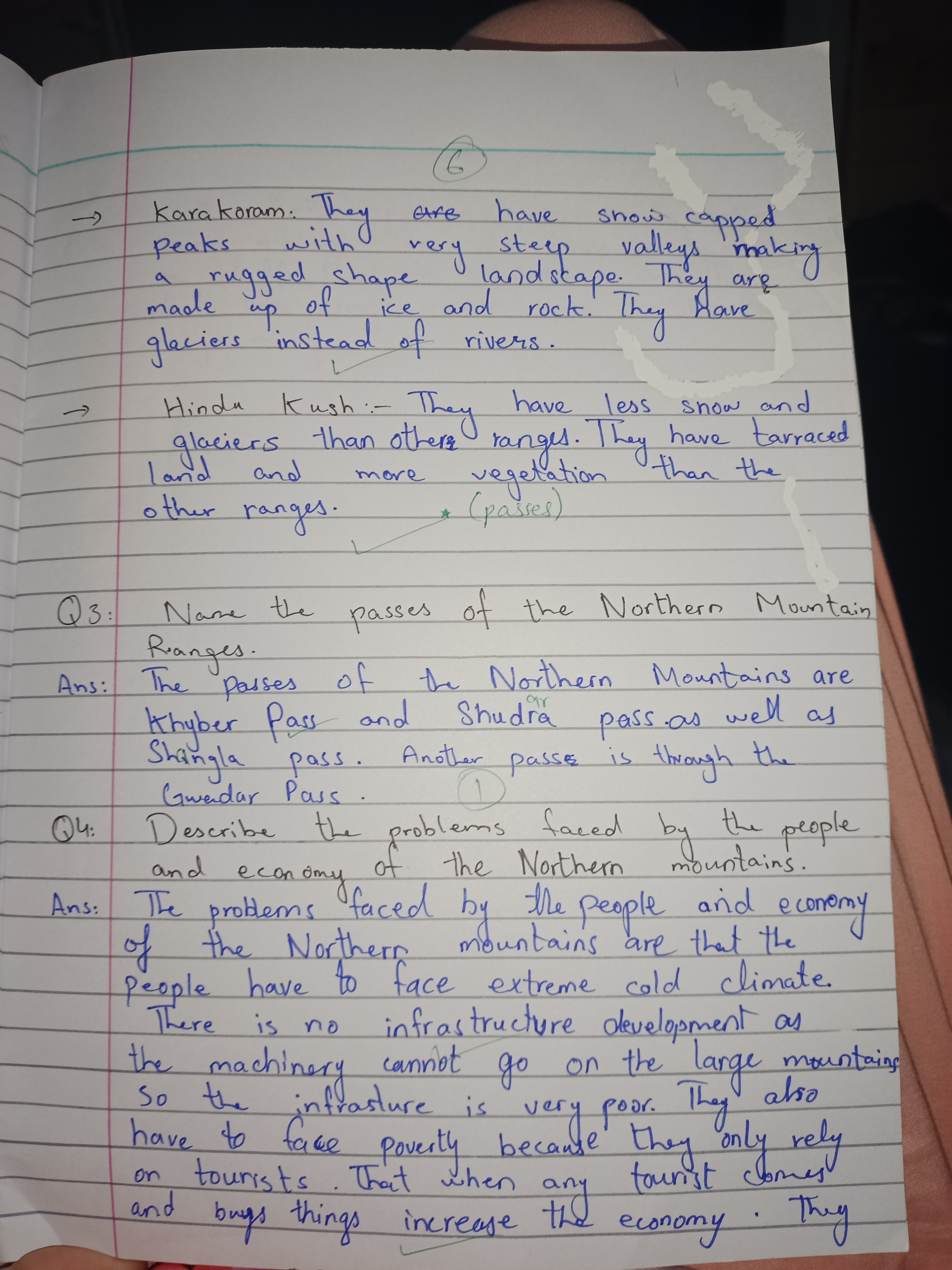This handwriting leans towards a careful and deliberate style. The letter formation is generally clear, with a rounded quality evident in words like "mountains" and "economy." The writing shows a consistent slant, and spacing between words is regular. There's a sense of neatness, though some letters exhibit slight variations in size, adding a touch of individuality. Overall, it appears as a functional and considered hand.
