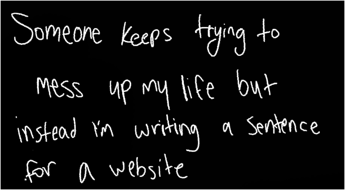 The handwriting presented here has a casual, almost playful style. The letter forms are rounded and open, seen in words like "Someone", "keeps", and "writing". There is a degree of inconsistency in letter size and spacing, giving it an unregimented, organic feel. The pressure seems light and even, creating thin strokes, which gives an overall impression of a relaxed hand. The slight slant to the right could imply a forward-thinking nature. The baseline is somewhat erratic, wandering up and down, suggesting a possible lack of focus or perhaps an artistic flair.