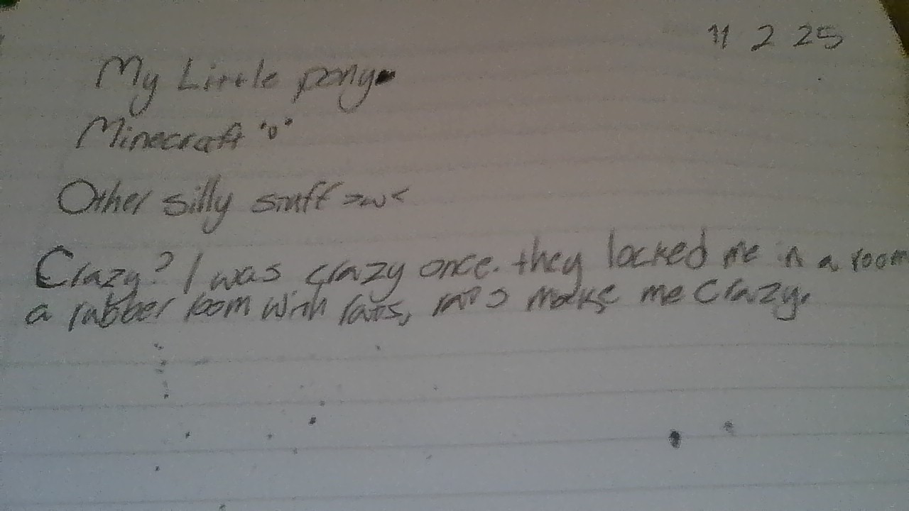 This handwriting possesses a playful and somewhat erratic charm. The strokes are light, almost airy, and the letter forms dance across the page with varying degrees of consistency. Note the mix of cursive and print, seen in phrases like "My Little pony" and then "Minecraft", suggesting a mind that flits between styles. The size is variable and letter spacing irregular, giving an impression of spontaneity rather than rigid control. The pressure seems light, indicating a relaxed approach to the task at hand. The overall impression is of a hand that's more interested in the idea than the execution.